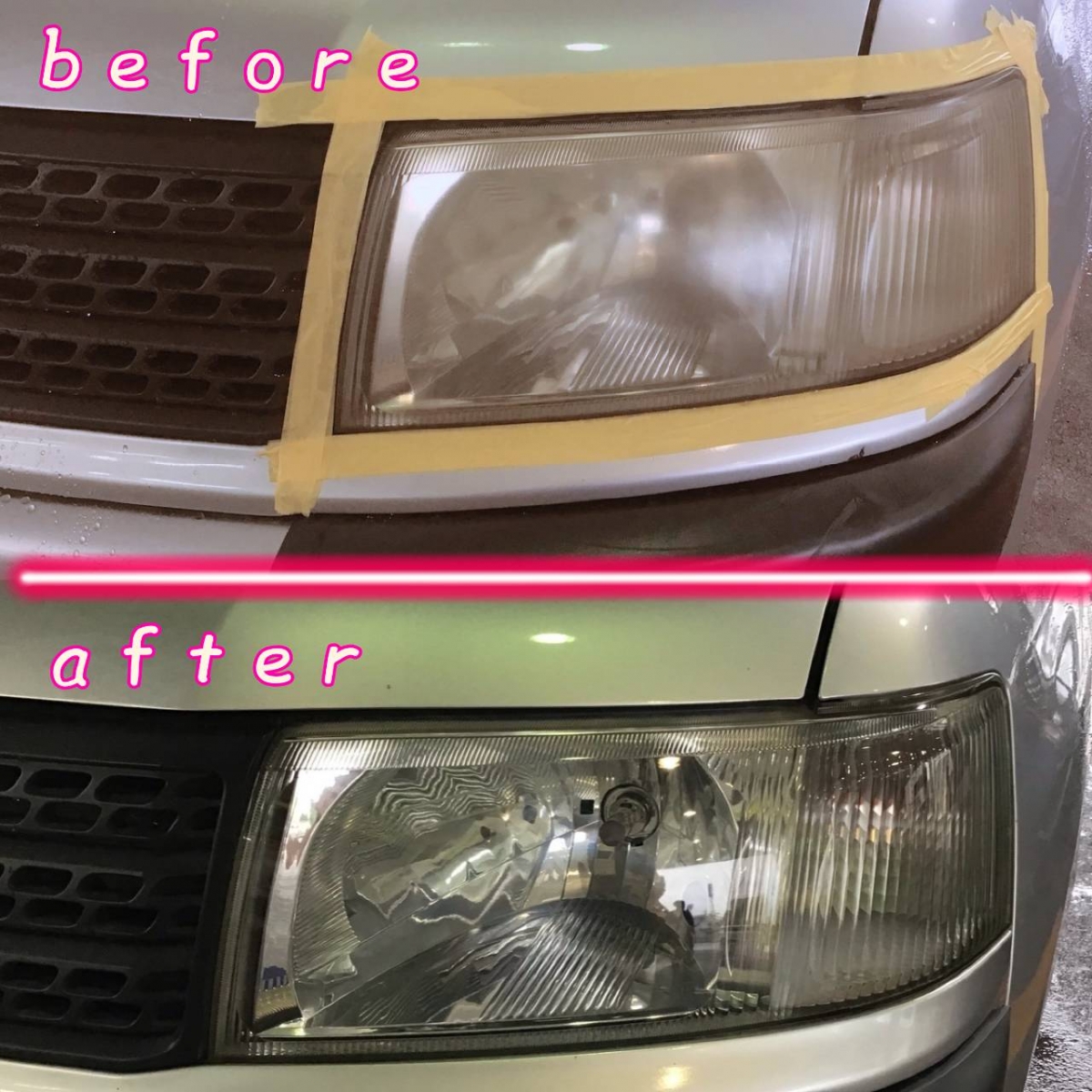 ●ヘッドライトの黄ばみや白い濁りをキレイに取り去ってガラスコーティングで新品同様に仕上げます。