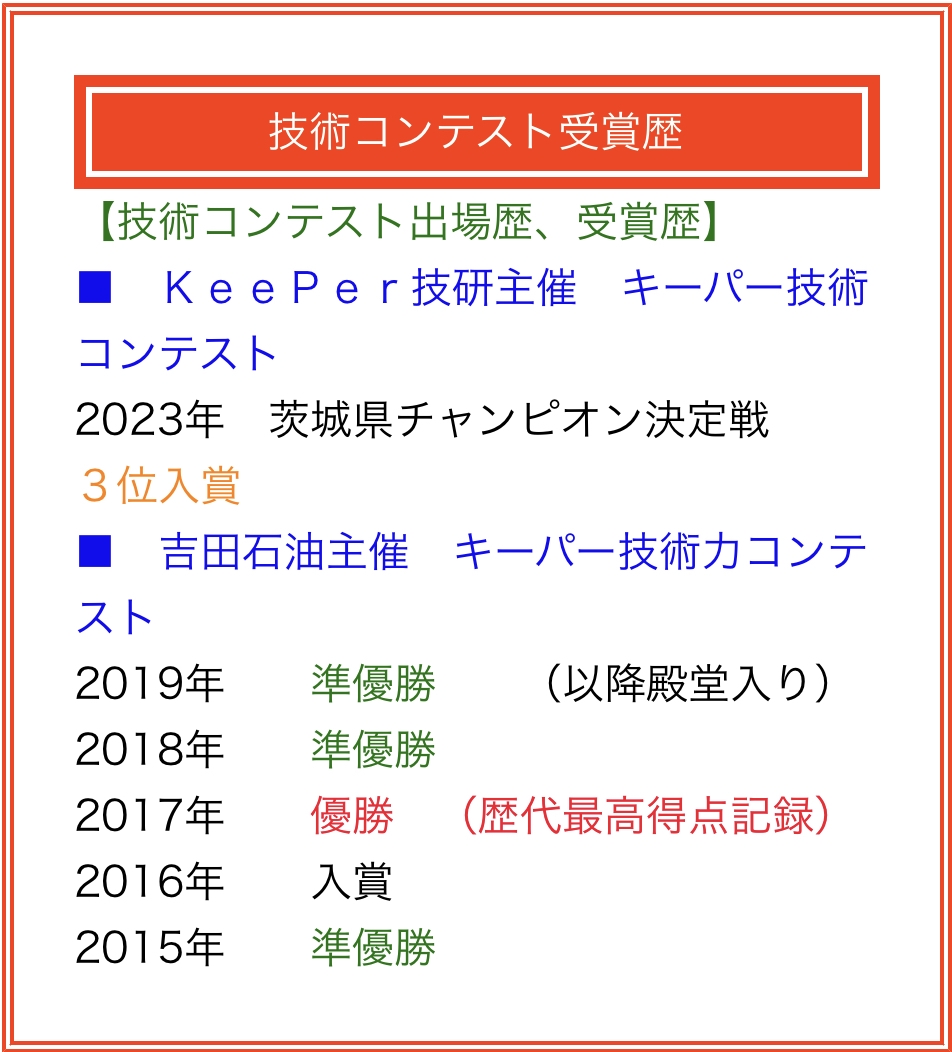- 第10回 2025年 キーパー技術コンテスト 茨城県チャンピオン決定戦 出場