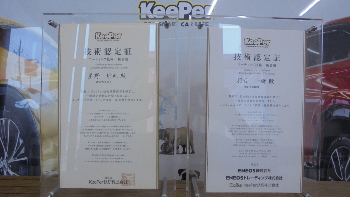 キーパープロショップには、コーティング技術1級資格者が在籍しています。