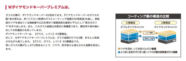 ダイヤモンドキーパーは、独特の高密度ガラス被膜と 特殊なレジン被膜の二重の被膜で出来ています。