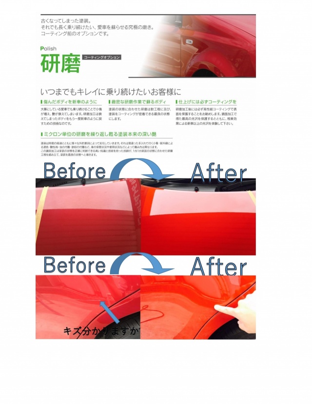 こちらで写真やコーティング剤の実物等を見ていただき、