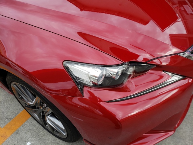 新 車からある程度の年月が経つと、 ヘッドライトの透明カバーの表面が白く濁ったり、黄ばんだりします。 これはポリカーボネイト製のカバー表面に塗ってある水性ハードコートが、 紫外線や熱で劣化したものです。 劣化したハードコートをキレイに取り去って、 無機質の強いガラスコートに入れ替えて透明度の高い新品の状態に戻します。 市販品のようにまたすぐ白く濁ったり、黄ばみが戻っててしまうことがありません。 少なくとも三年は透明状態が確保できます。