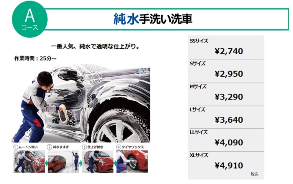 がセットになっているよりキレイがお得にできる手洗い洗車メニューです。