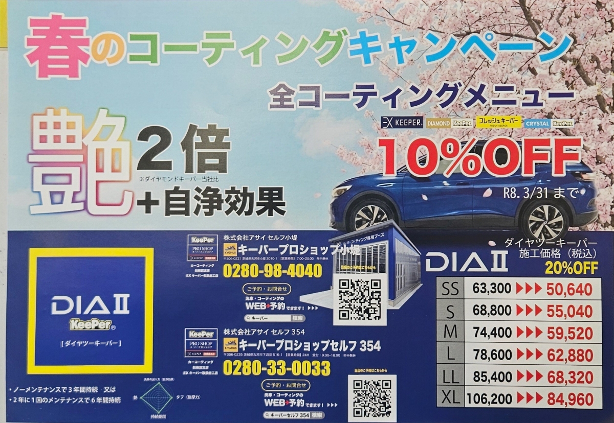 3月31日までコーティングキャンペーン実施中です。