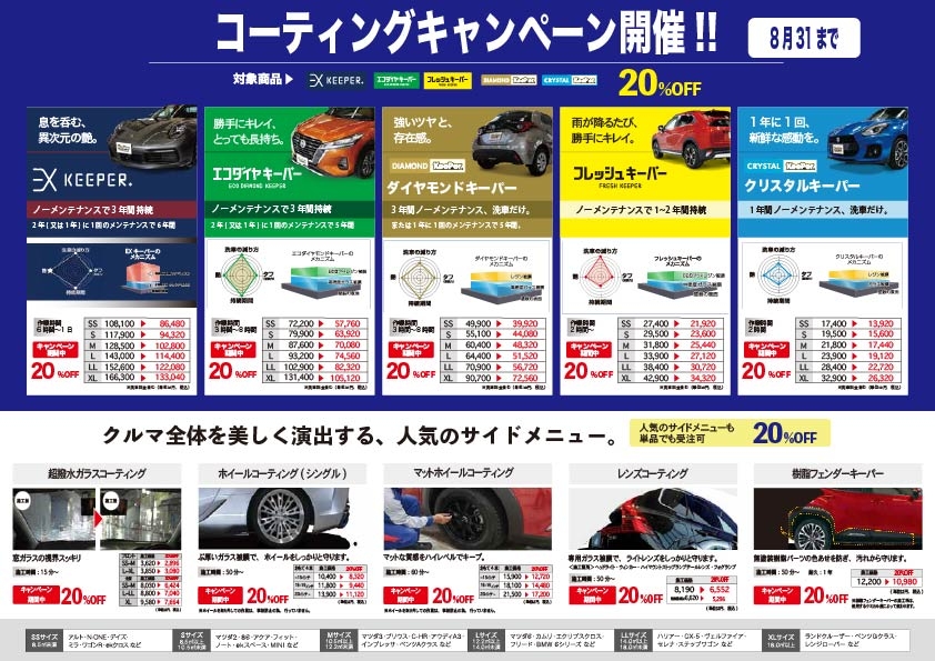 ダイヤモンドキーパーの艶と撥水+EXキーパーの自浄性能