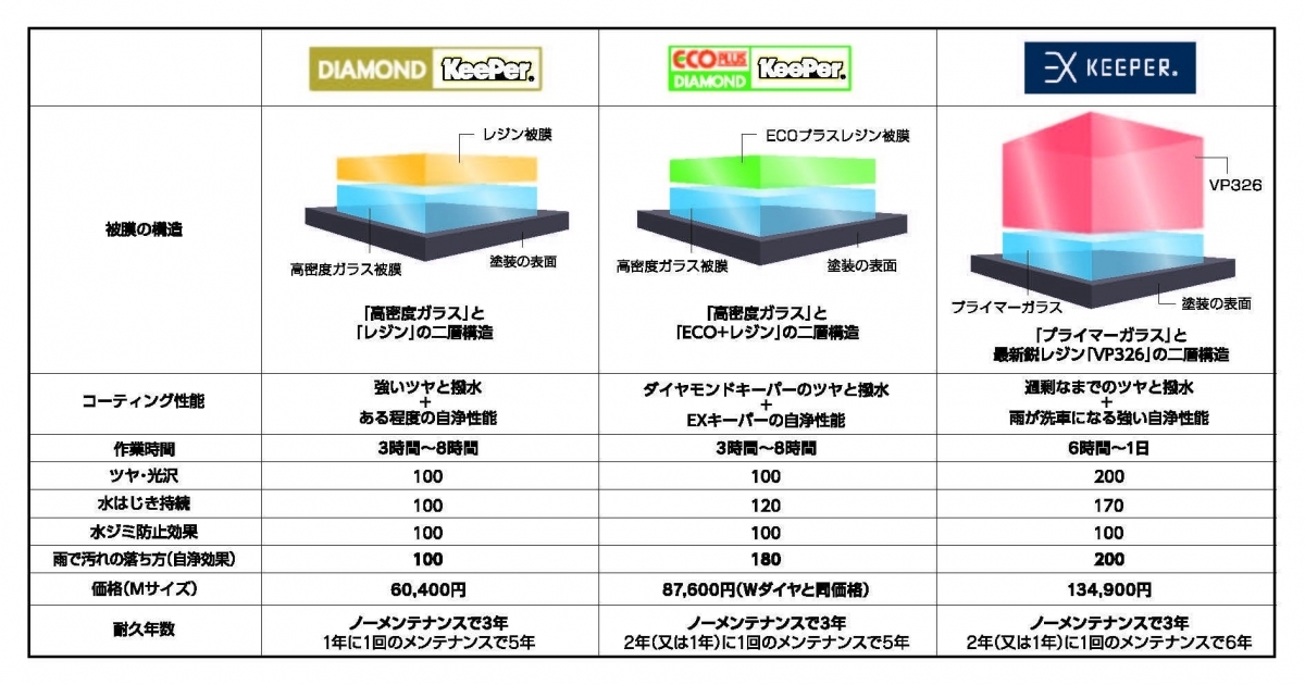 ・メンテナンスをせず、洗車だけで、3年間持続目安のプランと