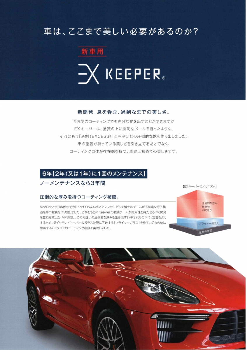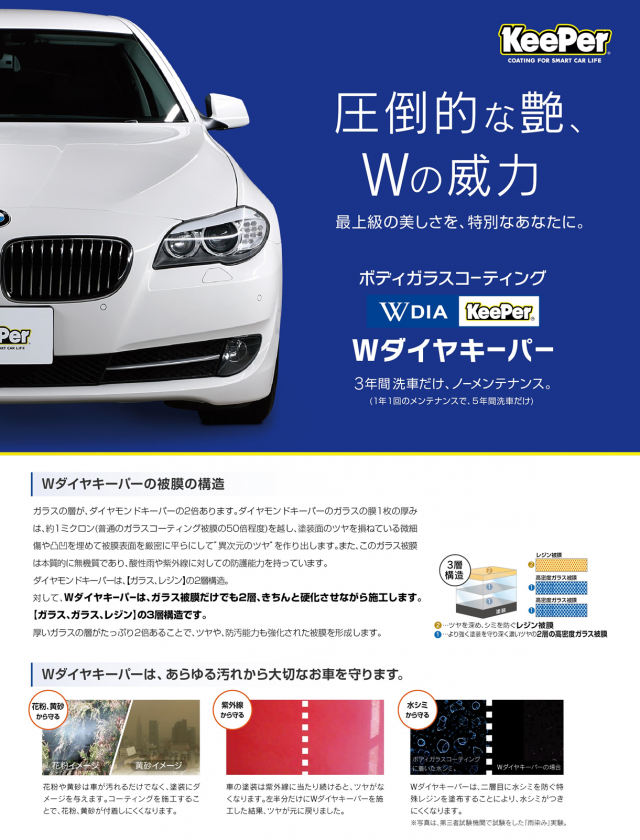 ガラスの層がダイヤモンドキーパーの2倍あります!!キーパー最上級の異次元のツヤがお客様のお車を包み込みます。