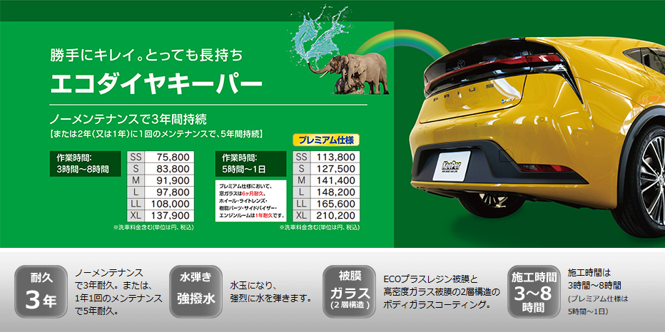 最強のツヤ、防汚効果抜群!!ダイヤモンドキーパー 新車に最適です。電話相談お待ちしています。