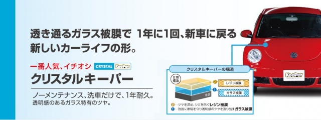 クリスタルキーパーは1年耐久のコーティングというよりも、1年に1度施工することによって、ツヤと水はじきなどの効果を続けて維持するだけでなく、回を重ねるほど塗装そのものの平滑が促進され、改善されていく効果があります。クリスタルキーパーは、ユーザーの皆様に1年に1回の施工を、楽しみにしていただけるコーティングなのです。