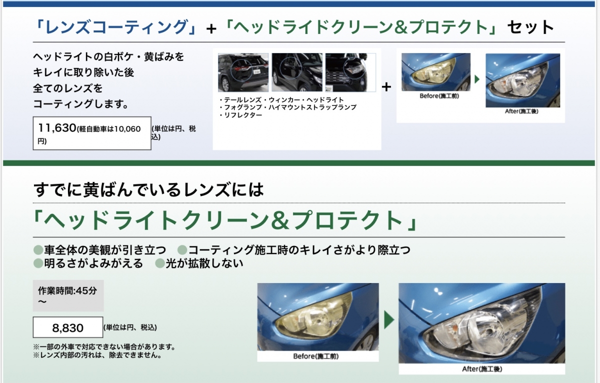 『レンズコーティング』『ヘッドライトクリーン&プロテクト』