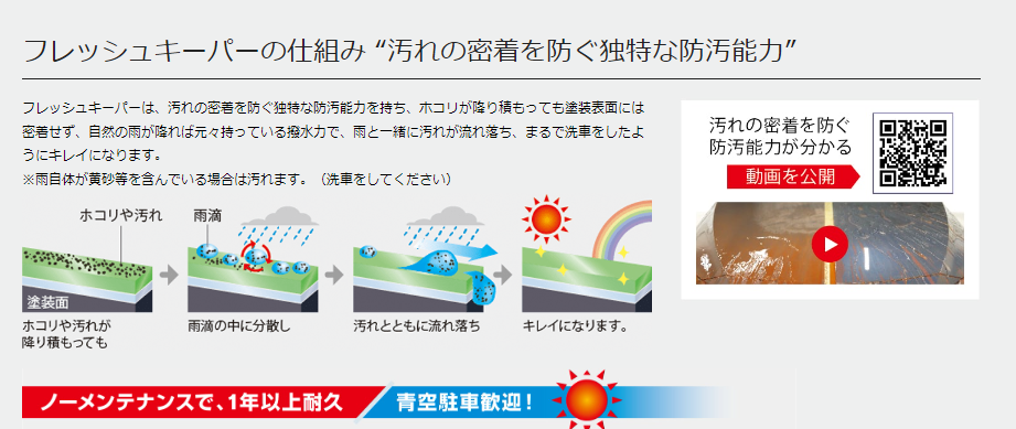 ● 雨が降れば、まるで洗車をしたようにキレイになるためお手入れが、すごく楽になります。