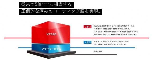 耐久期間 3年間 ノーメンテナンス、洗車だけ。(2年に1回のメンテナンスで6年耐久) ツヤ 8ツ星 ★★★★★★★★☆☆ 汚れにくさ 7ツ星 ★★★★★★★☆☆☆ 水はじき 強撥水 強い水はじき、水玉になります。 施工時間 6時間~12時間(メンテナンスは2時間~) 高密度プライマーガラス+ ファンデルワールス力の最小化・新「ダイヤⅡレジン」 KeePerの原点“ダイヤモンドキーパー”が、新しい輝きとコスパで