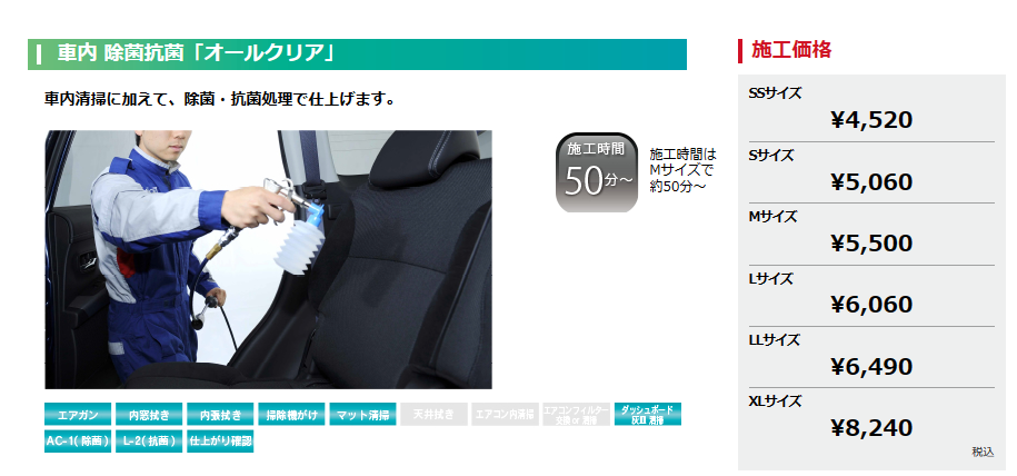 (お車のサイズ、洗車オプション等により異なります)