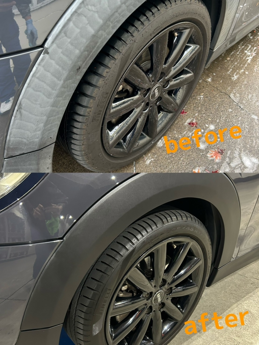 当店のコーティングケアは従来のコーティング被膜を一切削らず汚れとコーティングの大敵ミネラル膜だけをキレイに取り除くので、水ハジキとツヤが蘇ります!