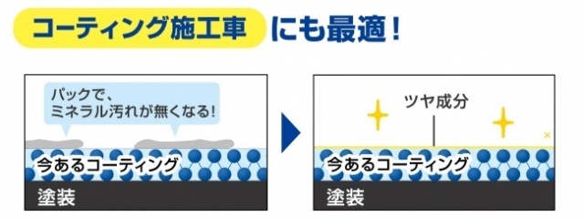 当店のコーティングケアは従来のコーティング被膜を一切削らず汚れとコーティングの大敵ミネラル膜だけをキレイに取り除くので、水ハジキとツヤが蘇ります!