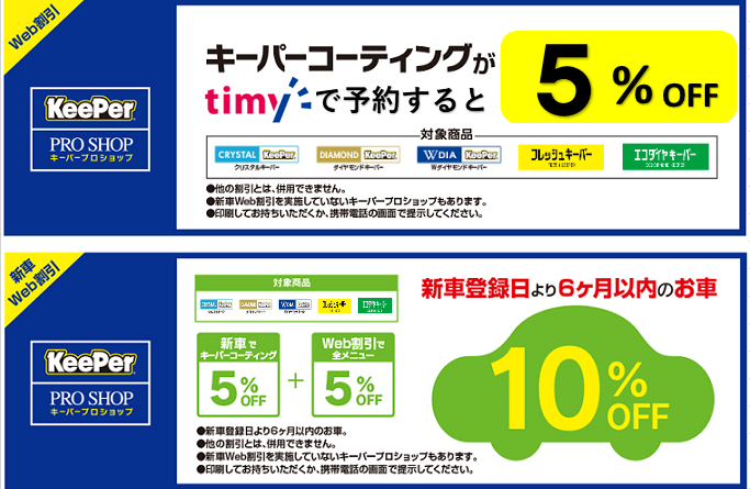 新車買ったし、カーコーティングしたいなぁ・・・そんなお客様のご要望にお答えした『新車割引』Web予約とあわせるといつでも施工料金が最大10%OFFです!