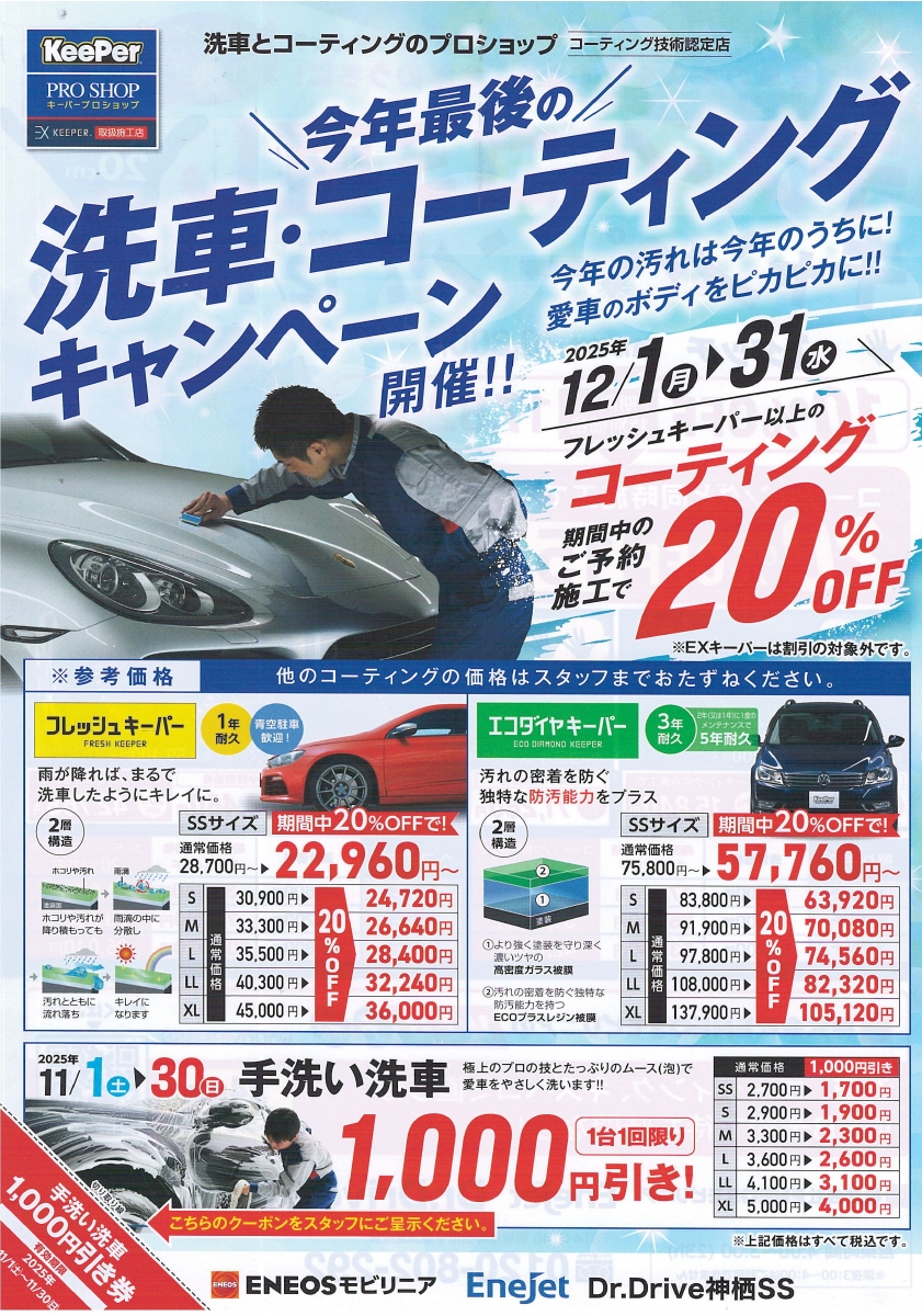 カーケアに関してもキーパープロショップを取得し、迅速丁寧な手洗い洗車から妥協を許さないボディーコーティング等、幅広く対応させて頂きます。