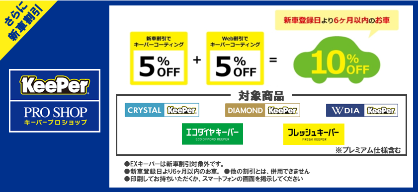 本クーポンのご利用により、コーティング施工が店頭価格より5%OFF(新車10%OFF)となります。