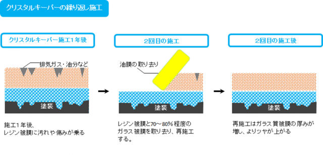 Bメンテナンス…下部のガラス被膜を整え、表面のレジン被膜を入替えます。