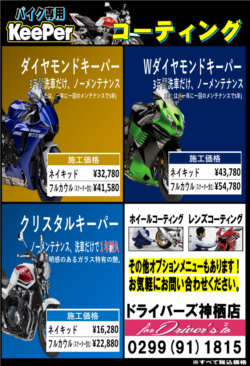 コーティングすれば水弾きがよくなり、雨が降っても汚れにくくなります。キレ