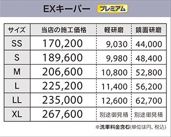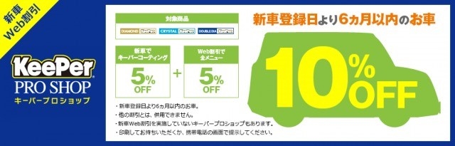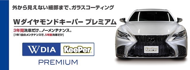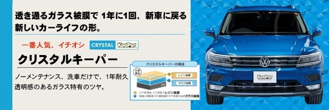 Q クリスタルキーパーの予約をしたいんだけど、今日出来ますか? A 当日のご予約でも大歓迎です。ご予定の時間を一度店舗にお問い合わせ下さい。 Q ダイヤモンドキーパーを予約したいんだけど、今日出来ますか? A 当日施工可能です。下地処理からコーティング被膜定着乾燥時間等で6時間以上お車をお預かり致します。ボディー状態によってはお時間を更に頂く場合や、予約状況もございますので事前にお問い合わせ下さい。 Q コーティング施工の間、代車は用意してもらえますか A 代車利用は事前に問い合わせをお願い致します。出払っている場合は送迎致します。ご家族かご友人と一緒に来店されてお車を預けられる事も可能です。 Q コーティング施工後の手入れはどうすればいいですか? A 通常の水洗い洗車、シャンプー洗車でOKです。洗車機での洗車も問題ありません。洗った後は拭き上げをして下さい。水道水には、ミネラルが多く含まれる為、乾くと水シミの原因になります。(雨は水道水や井戸水に比べミネラル分は非常に少ない為「雨」が降る度に拭かなくても問題は全くありません。)効果をしっかり発揮する為にも、シャンプーを使う場合は、コーティング剤やコンパウンドの入っていないものをご使用下さい。(鳥のフン、樹液、花粉が付いた場合は、なるべく早めの洗車をお願いします。) Q コーティングした後は、水に濡らさないほうがいいですか? A 水に濡れても問題ありません。作業中に必要な乾燥時間などは含まれております。キーパーコーティングは施工完了後、例えば雨の中お帰りでも効果が変わる事はありませんのでご安心下さい。 Q 予約当日の天気予報が雨だけど、そんな日にコーティングして影響はないですか? A コーティング作業は屋根のある専用ブースかピットで行いますので、雨の日の施工も全く問題ございません。施工が終わって雨の中のお帰りでも、品質が変わる事はございませんので、ご安心下さい。 Q 自分の車には、何のコーティングがピッタリか分からない。果たしてコーティングが効いているか分からないし。 A 私達にお任せ下さい! ご一緒にお車を見ながら最適なコースをご案内させて頂きます。お気軽にご相談下さいませ。 Q 以前ダイヤモンドキーパー、クリスタルキーパーをした事があるが、半年もしない内に一部の水弾きが悪くなった。どうして? A 他社ガラスコーティング全般にも言える事ですが、原因は『ミネラル膜の蓄積』です。雨水、水道水、地下水、泥水にはミネラル成分が有りますが、乾いたり、拭いたりして水分が無くなっても透明のミネラル膜はコーティング被膜の上に覆いかぶさった状態になり、コーティング被膜が埋もれてしまい、ミネラルは水を弾かないので部分的に弾かない箇所が出てきます。(天井・ボンネット・トランク等の上面が多いです) 解決方法としては、他社コーティングですと専用のメンテナンスクリーナーかコンディショナーを使用しますが、ダイヤモンドキーパー・クリスタルキーパー施工車は手洗い洗車時に『ミネラル取り』と申して頂くと洗車拭き上げと並行しながら水を弾かなくさせているミネラル膜を除去出来ます。 価格は手洗い洗車に+500円ですが、アフターメンテナンスとして当店ではダイヤモンド、クリスタルキーパーを施工されたお客様へ定期的にミネラル取り洗車無料のご案内を行っております。 Q 支払いは、カードも使えますか? A 各種クレジットもご利用頂けます。 Tポイントも貯まります。お会計時にTカードをご提示下さい。 ※一部対象外カード有