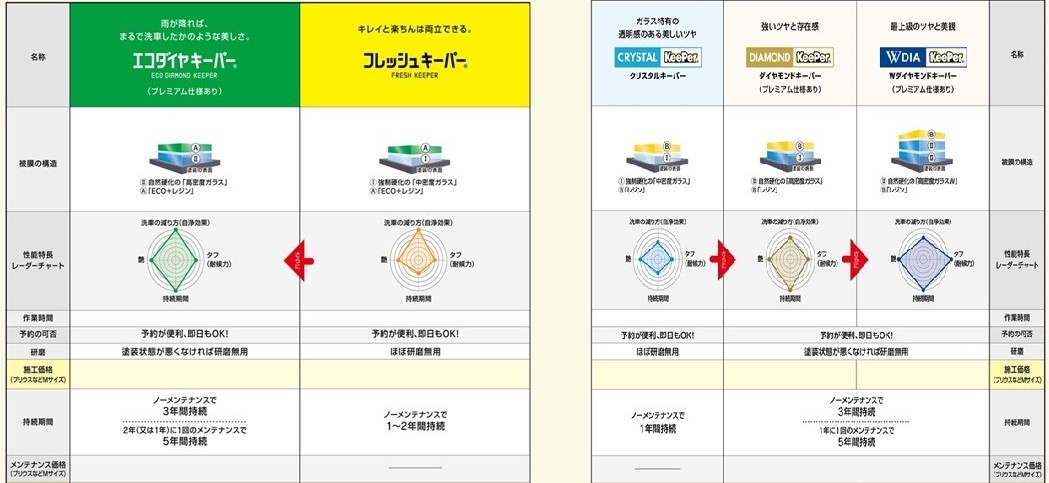 クリスタルキーパー、フレッシュキーパー、ダイヤモンドキーパー、Wダイヤモンドキーパー、ECOプラスダイヤモンドキーパー