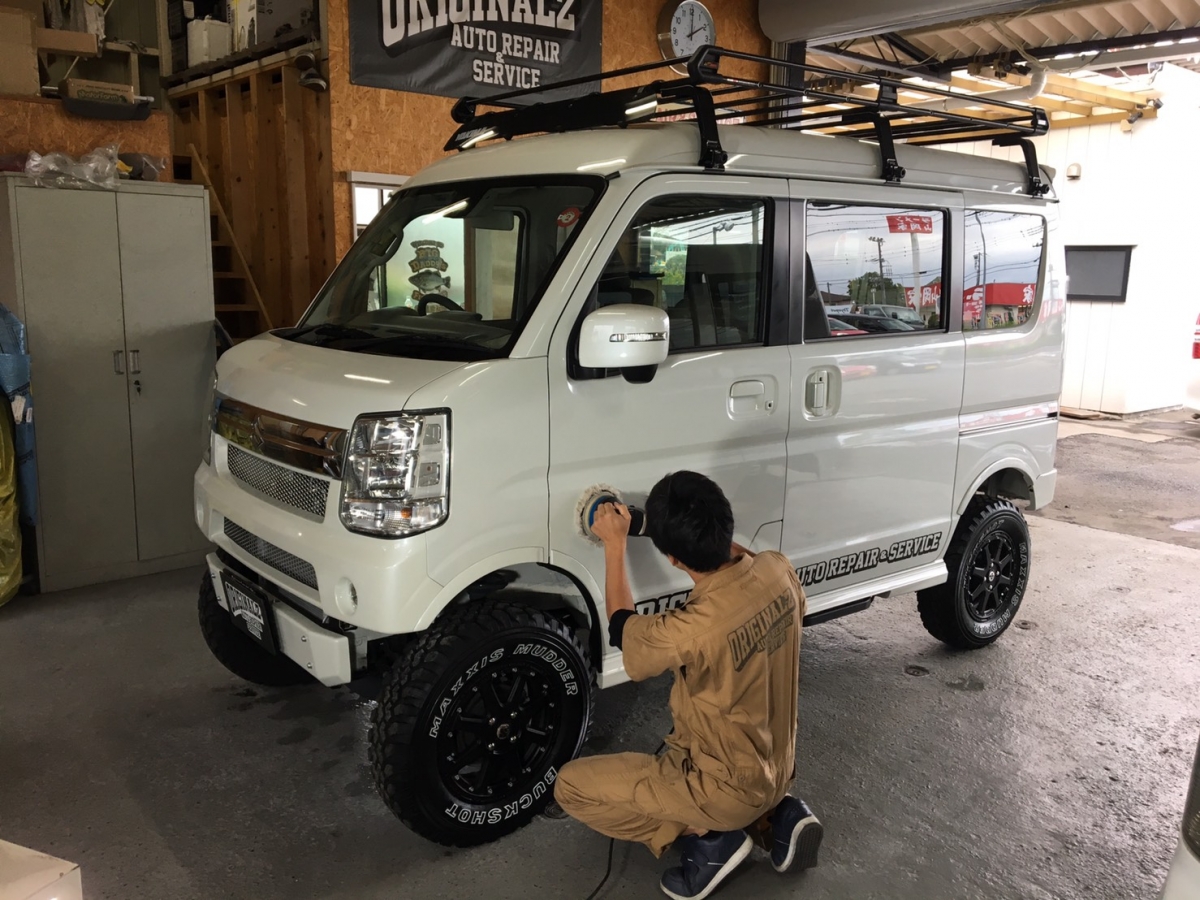 そこから、新車のエブリイやジムニーなどのカスタムなどにも力を入れ、 工場での一貫作業として今までのノウハウを生かしております。