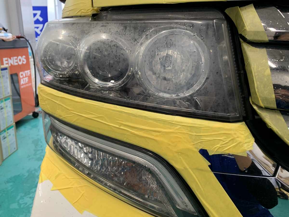 黄ばみを落とした後、ヘッドライトコーティングをするので