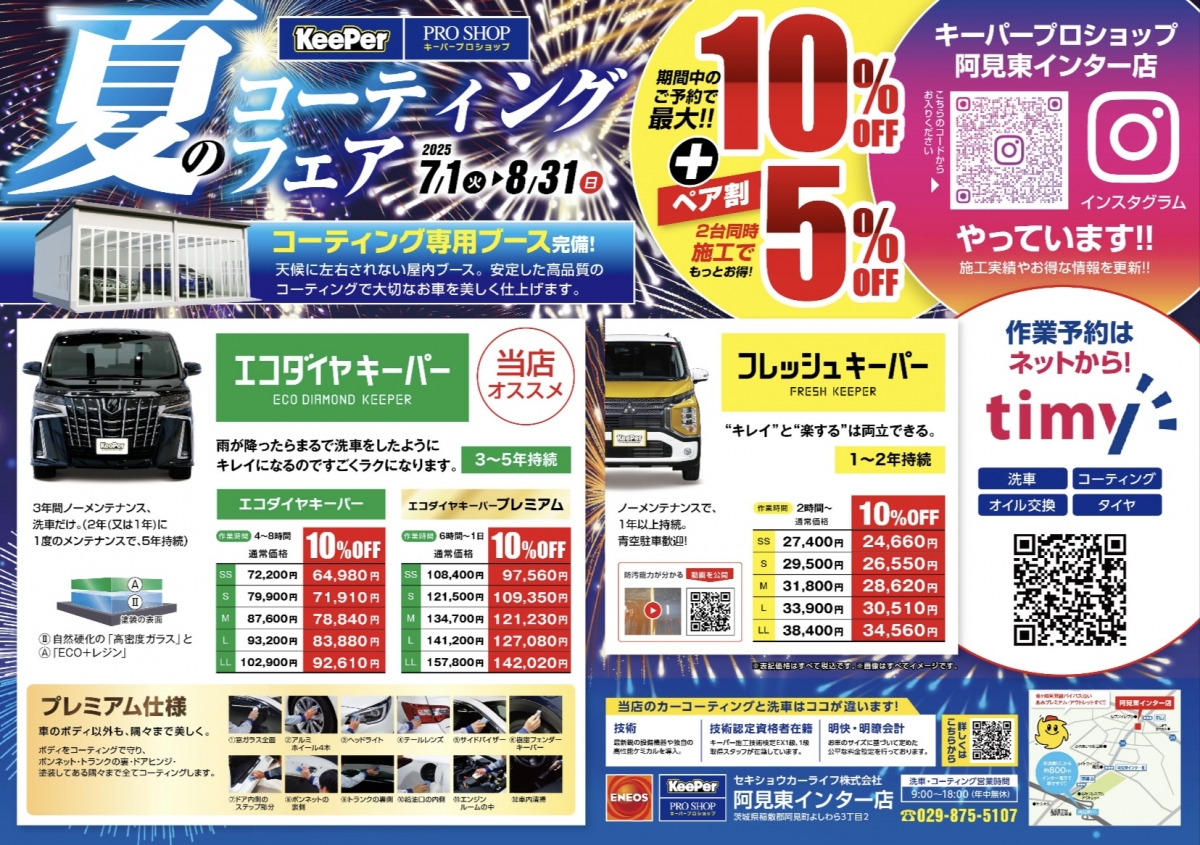 timy始めました!洗車・コーティング・整備のネット予約が可能となりました!是非ご利用ください!