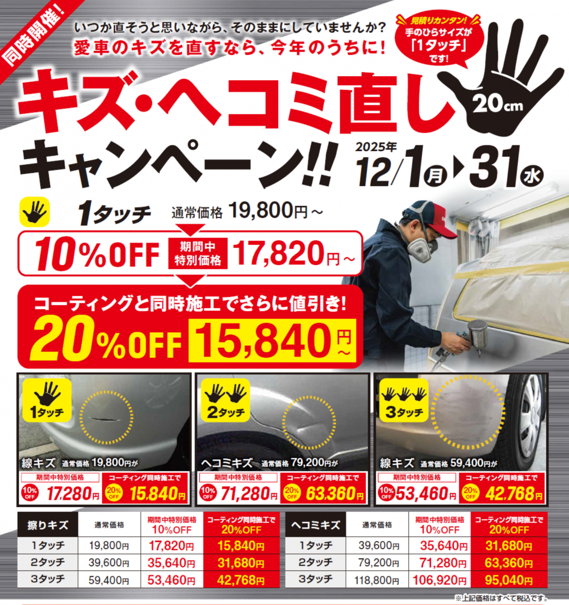コーティングとセットで安くなる♪この機会に傷も直してみませんか?
