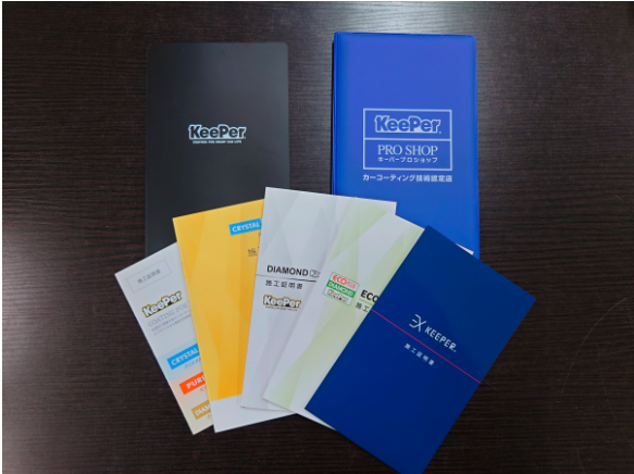 艶で輝く愛車のお引渡しの際に、当店でコーティングを施工した証明として「コーティング施工証明書」をお渡し致します。