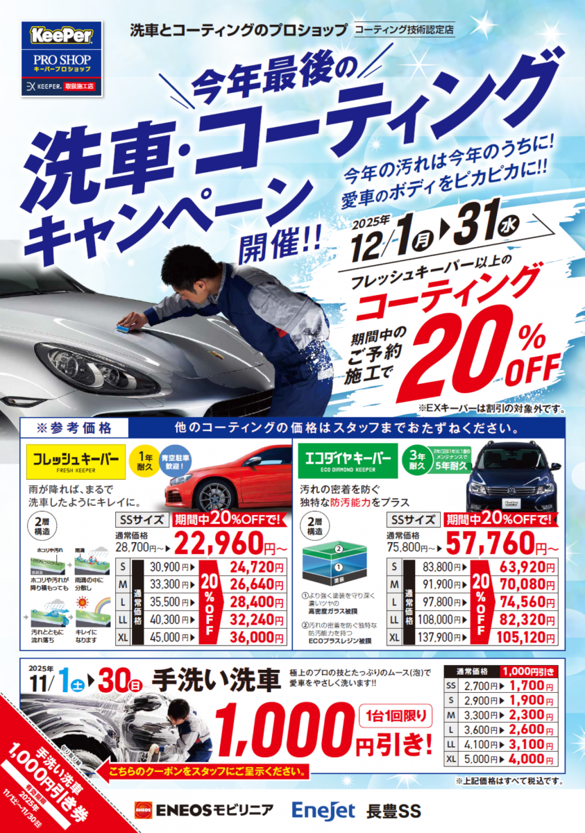 ・キーパーコーティングが割引の対象です。(手洗い洗車などは適用外です)