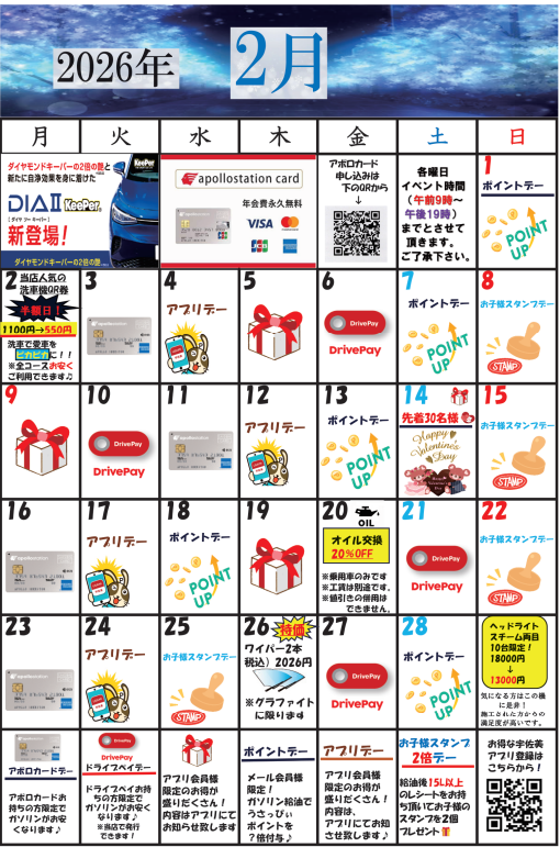 さらにクレジット使用時、ドライブペイ(専用のキーホルダー)を登録して給油すると、楽天、D、ポンタのいずれかのポイントも貯めることが可能です。詳しくはスタッフまで!