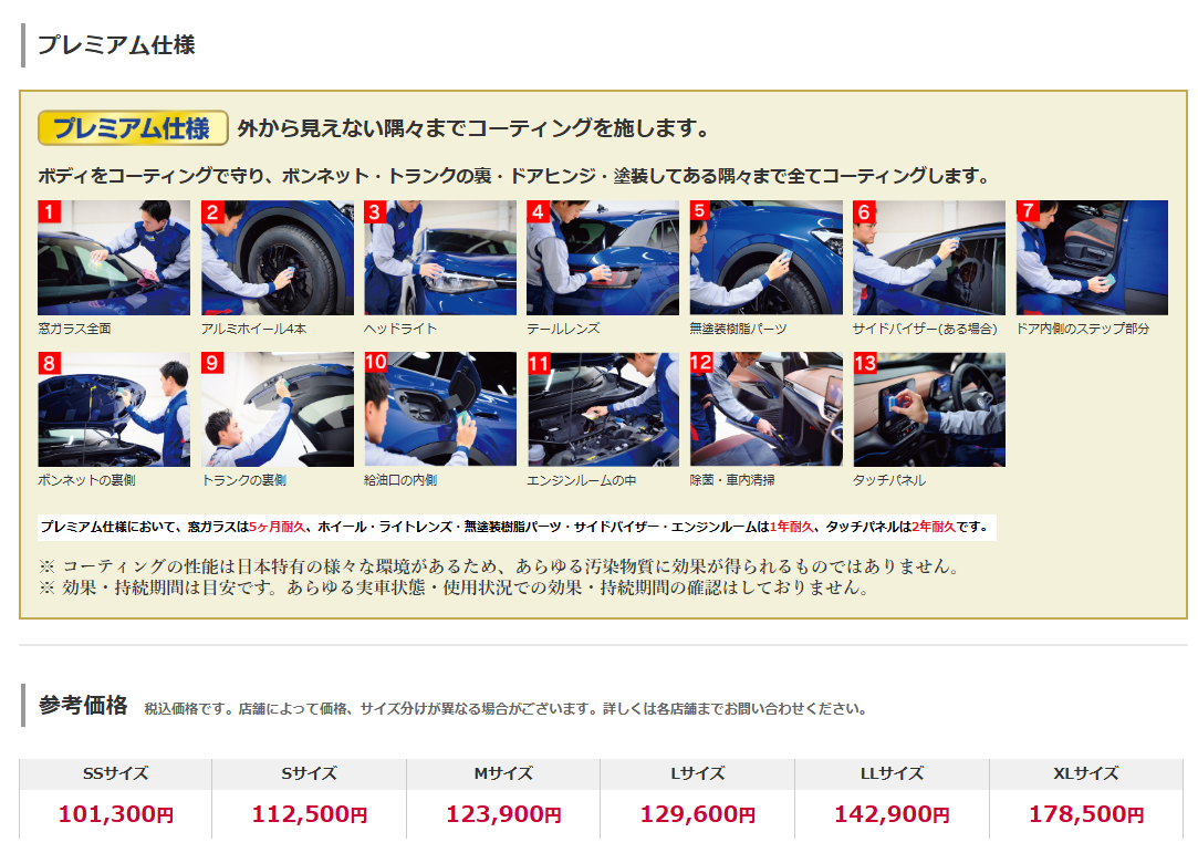 - 手洗い洗車 10時~19時(最終受付18時30分) コーティング10時~17時(最終受付15時)