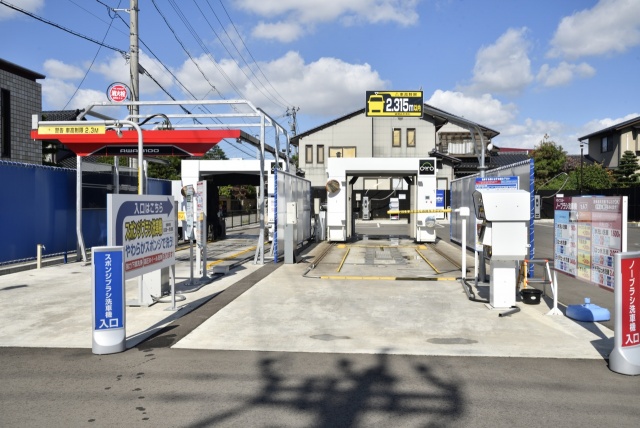 カーロ泉野店は、セルフ洗車場も併設。スポンジブラシ型とノーブラシ型の異なるタイプの2機の洗車機を導入しています。