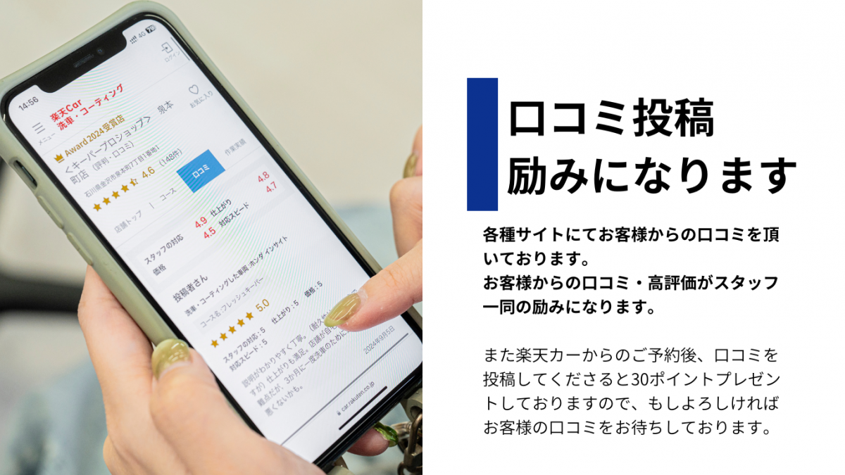 私たちにお任せください!車の状態を確認させて頂きながら、おすすめのコーティングやオプションを提案させて頂きます。もし、ご不明点や不安なことがありましたらご相談下さい!