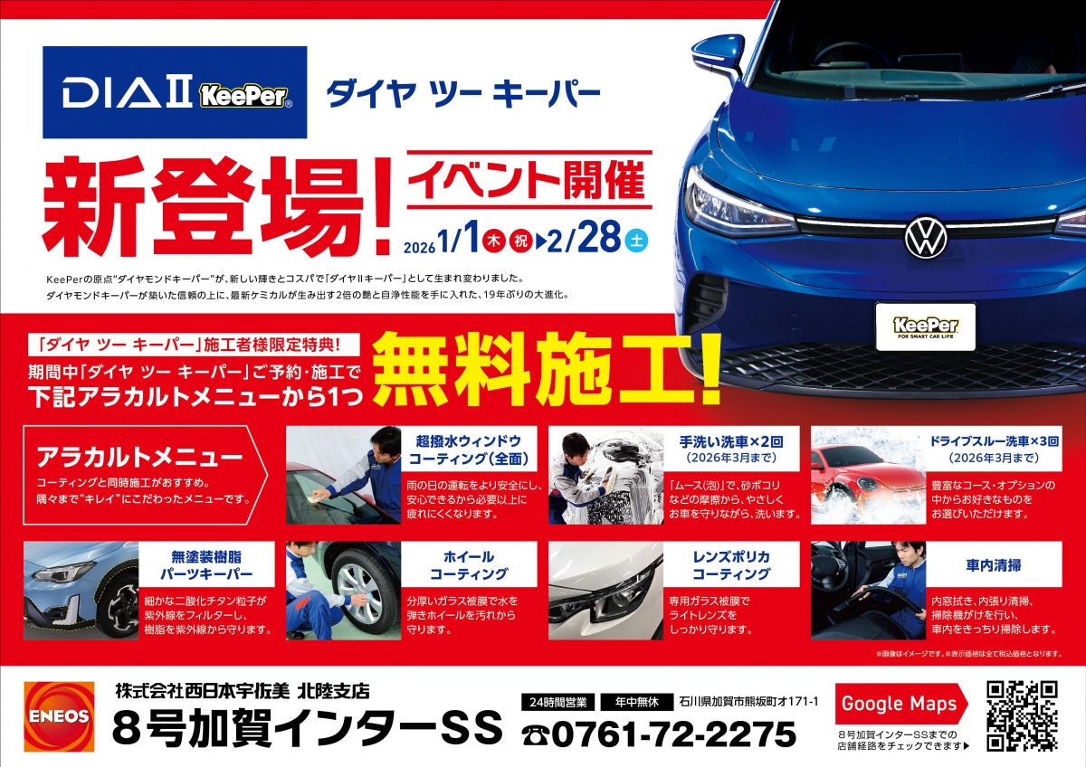 新商品!ダイヤⅡが出ました!従来のダイヤのツヤと、エコダイヤの水弾き兼ね備えたコーティングです!価格もエコダイヤよりお安くなっているので、是非お試しください♪当店では、2月末まで、ダイヤⅡキャンペーン...