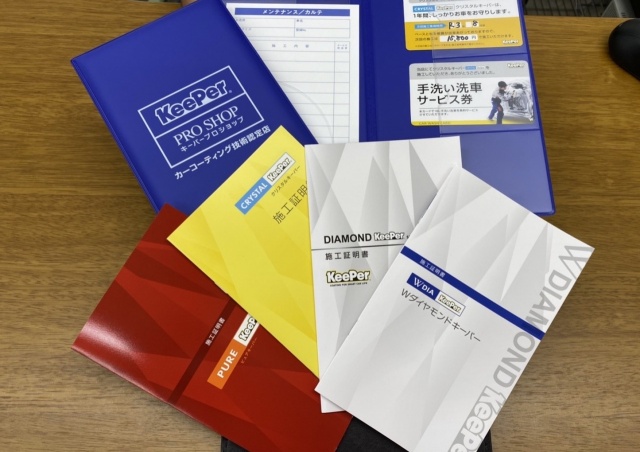 キーパーコーティングを施工頂いたお客様には、施工証明書をお渡ししています。