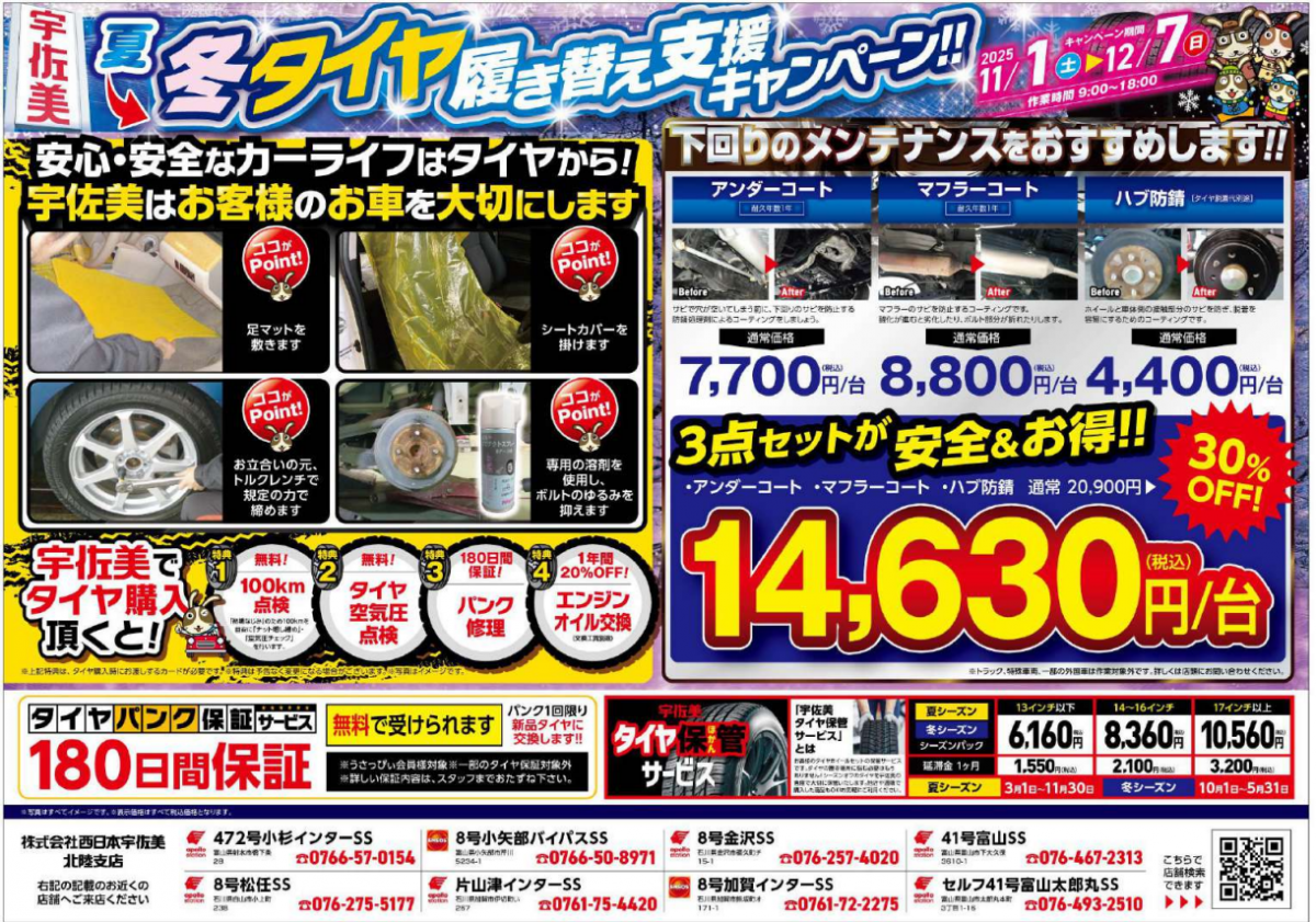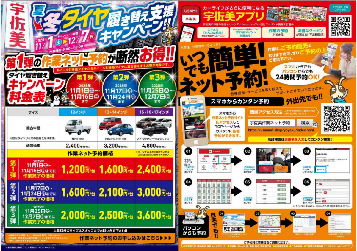 宇佐美ではタイヤ交換キャンペーンも開催中!