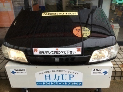 ヘッドライトは ギアアクションポリッシャーを使用した劣化した部分を削り取る PROコースのヘッドライトクリーン&プロテクトを展示してます。