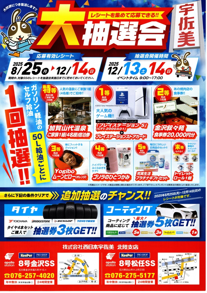 期間中、対象SSのレシートを抽選会実施日までに貯めておいてください。
