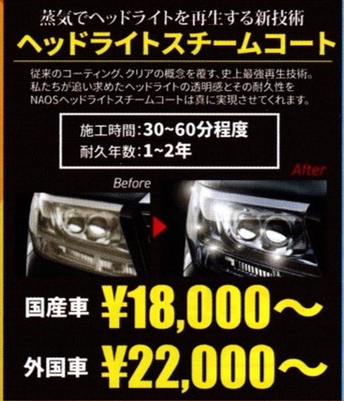 黄ばんでいるだけで車が古く見えたり、夜の走行時ライトが暗く感じます。