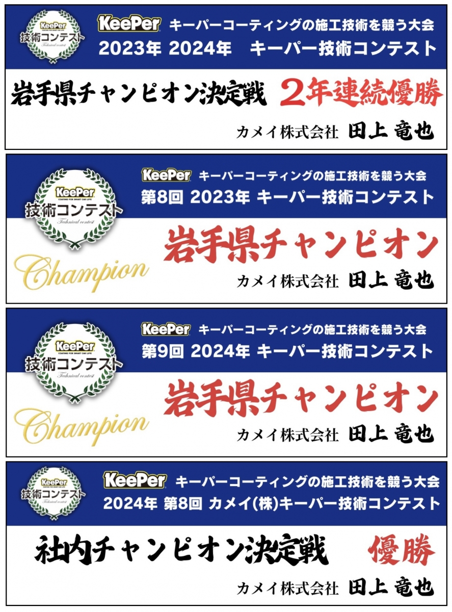 ・2024年 第9回 KeePer技術コンテスト 岩手県チャンピオン決定戦 [🥇]