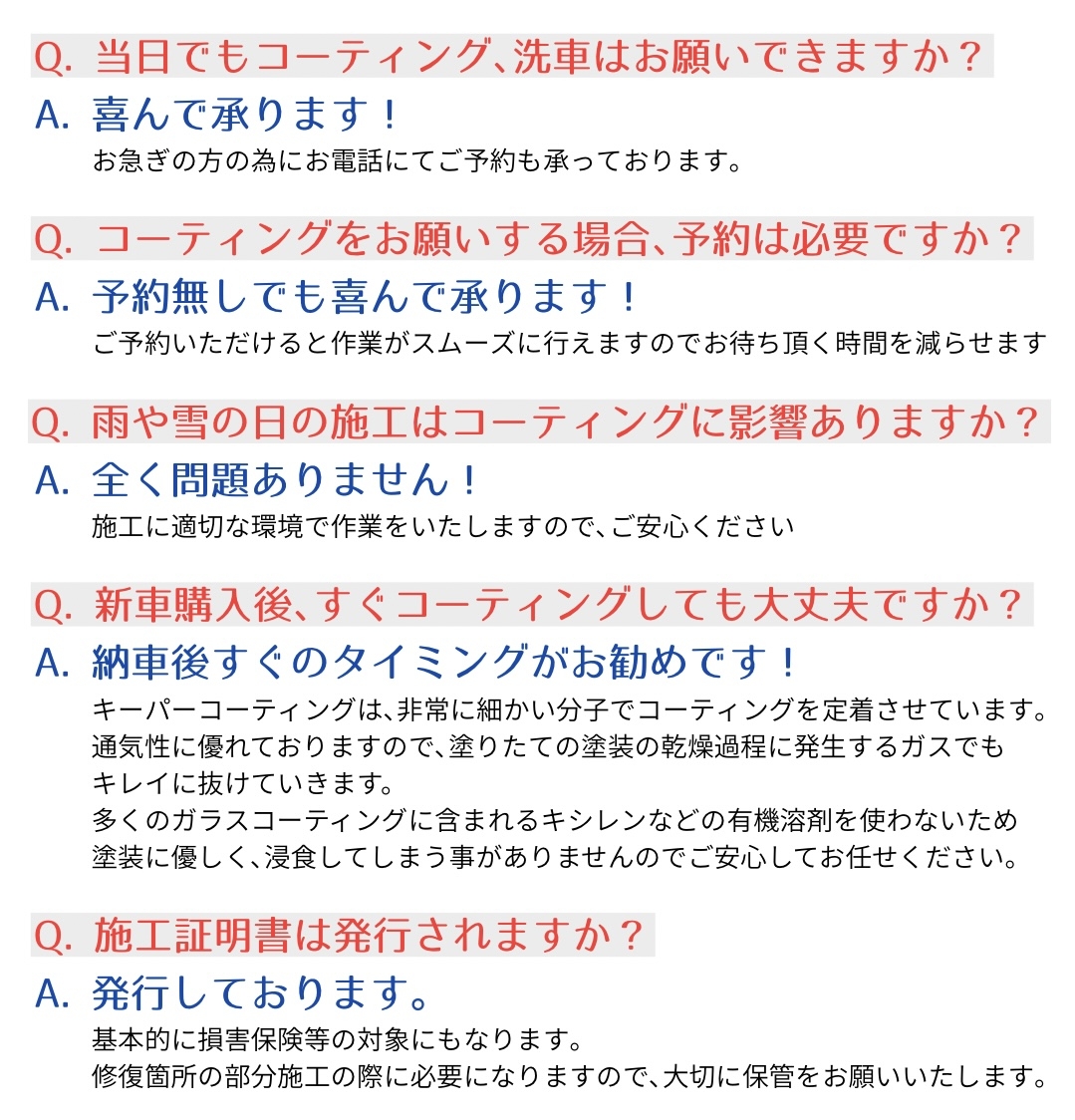 クリスタルキーパー、フレッシュキーパーを施工頂いき1ヶ月点検にご来店頂いたお客様には差し替えで1年後被膜確認点検カードをお渡し致します。1年後の被膜の状態を確認させて頂き再施工のご案内をさせて頂きます。