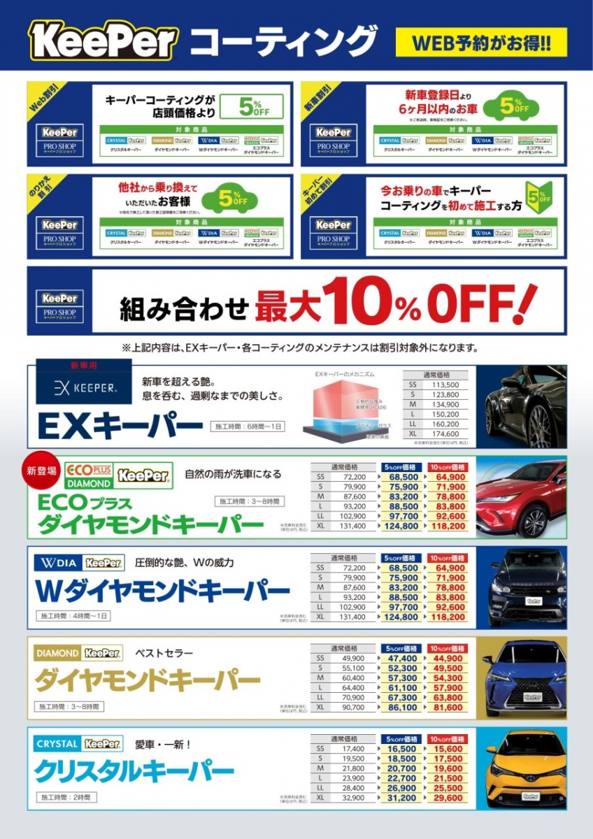 ※EXキーパー、各コーティングのメンテナンスは対象外です。