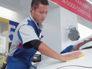 お客様の笑顔の為にどんな事でも頑張ります! キーパーの施工だけでなく、 水垢取りも丁寧に確実にこなします! |
