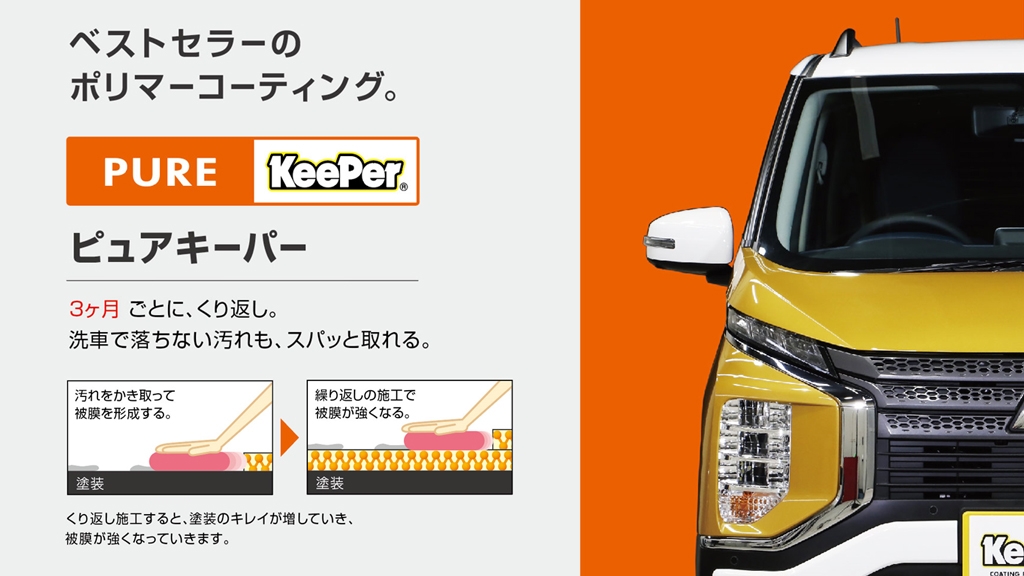 A.コーティングは、納車後すぐのタイミングがお勧めです。 キーパーコーティングは、非常に細かい分子でコーティングを定着させていきます。 例えば、塗りたての塗装でも、通気性に優れておりますので塗装の乾燥過程に出てくるガスも コーティングした後でもキレイに抜けていきます。 多くのガラスコーティングに入っているキシレンなどの『有機溶剤』を使わないため 塗装に優しく、侵食してしまうことはありませんのでご安心してお任せ下さい。