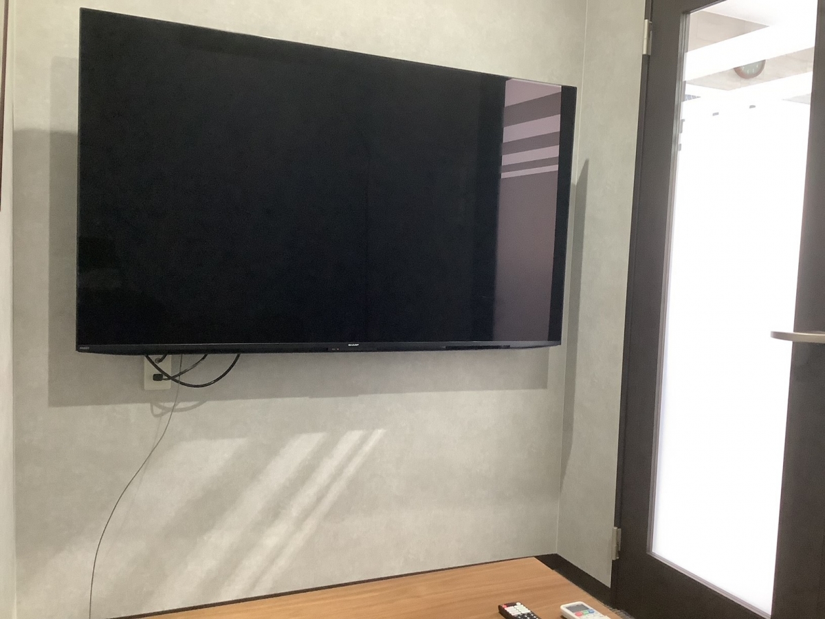 大画面のモニターと大きなソファーでゆったりと