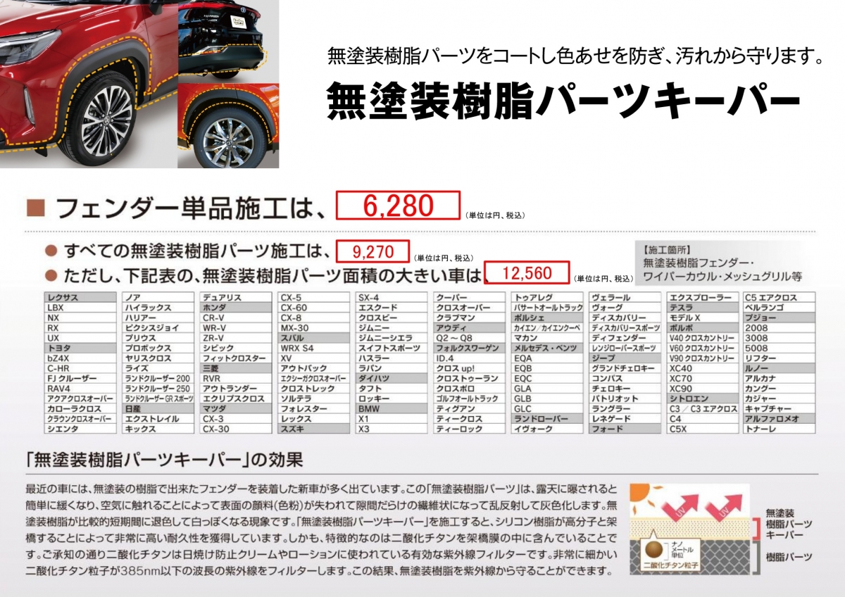 樹脂フェンダーの艶を守る!樹脂パーツの多いお車に。