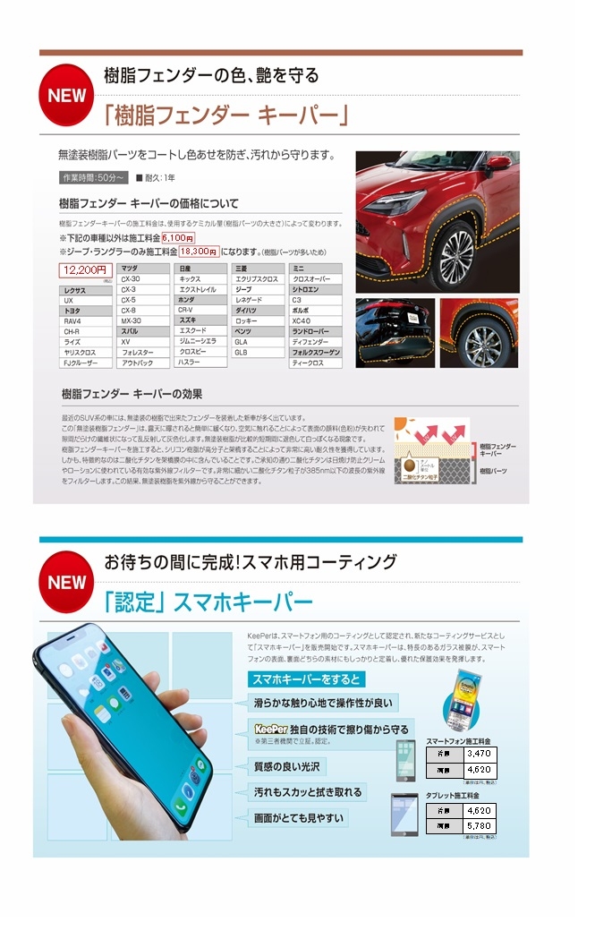 *EXキーパー、各コーティングのメンテナンスは割引対象外です。